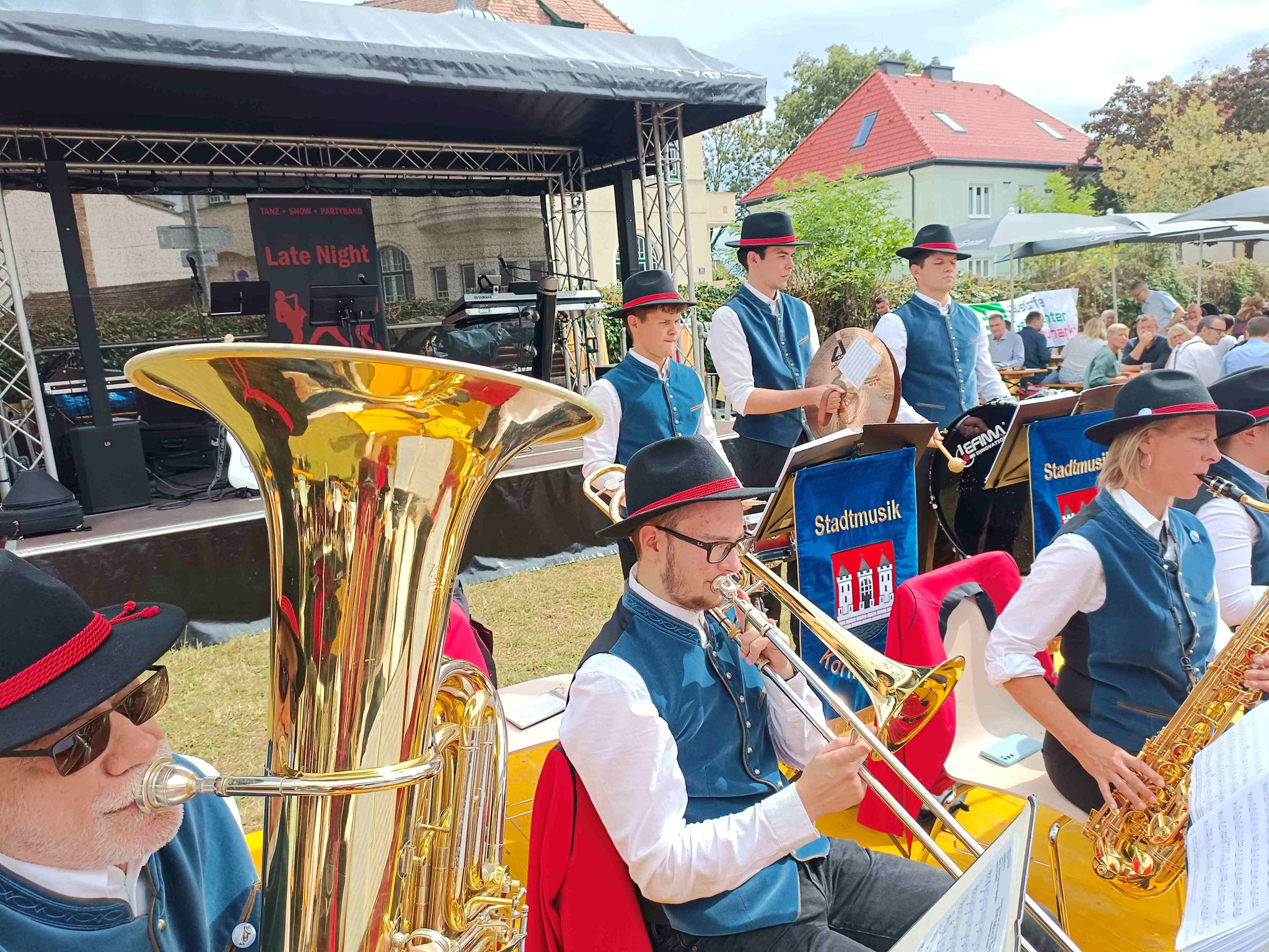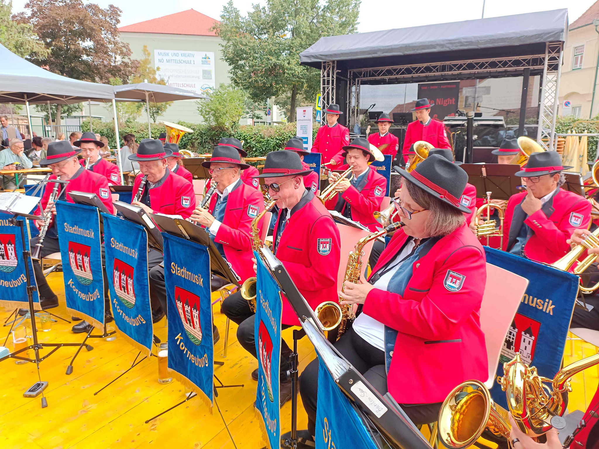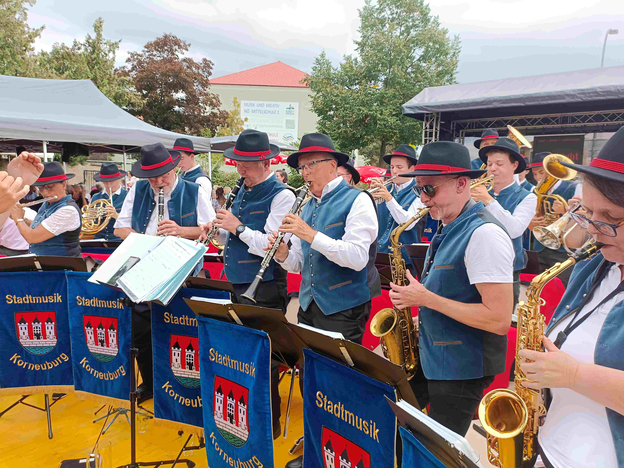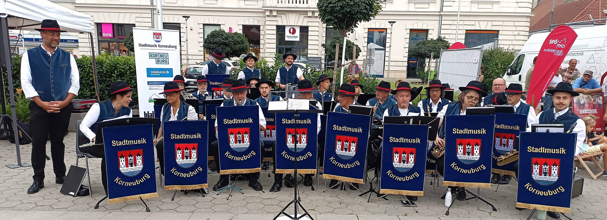 selbstverständlich auch die Stadtmusik Korneuburg unter der Leitung von Peter Vasicek nicht fehlen. Sie konzertierte am 9.9. 2023 in der Werfthalle und die Blasmusikklänge wurden nach außen