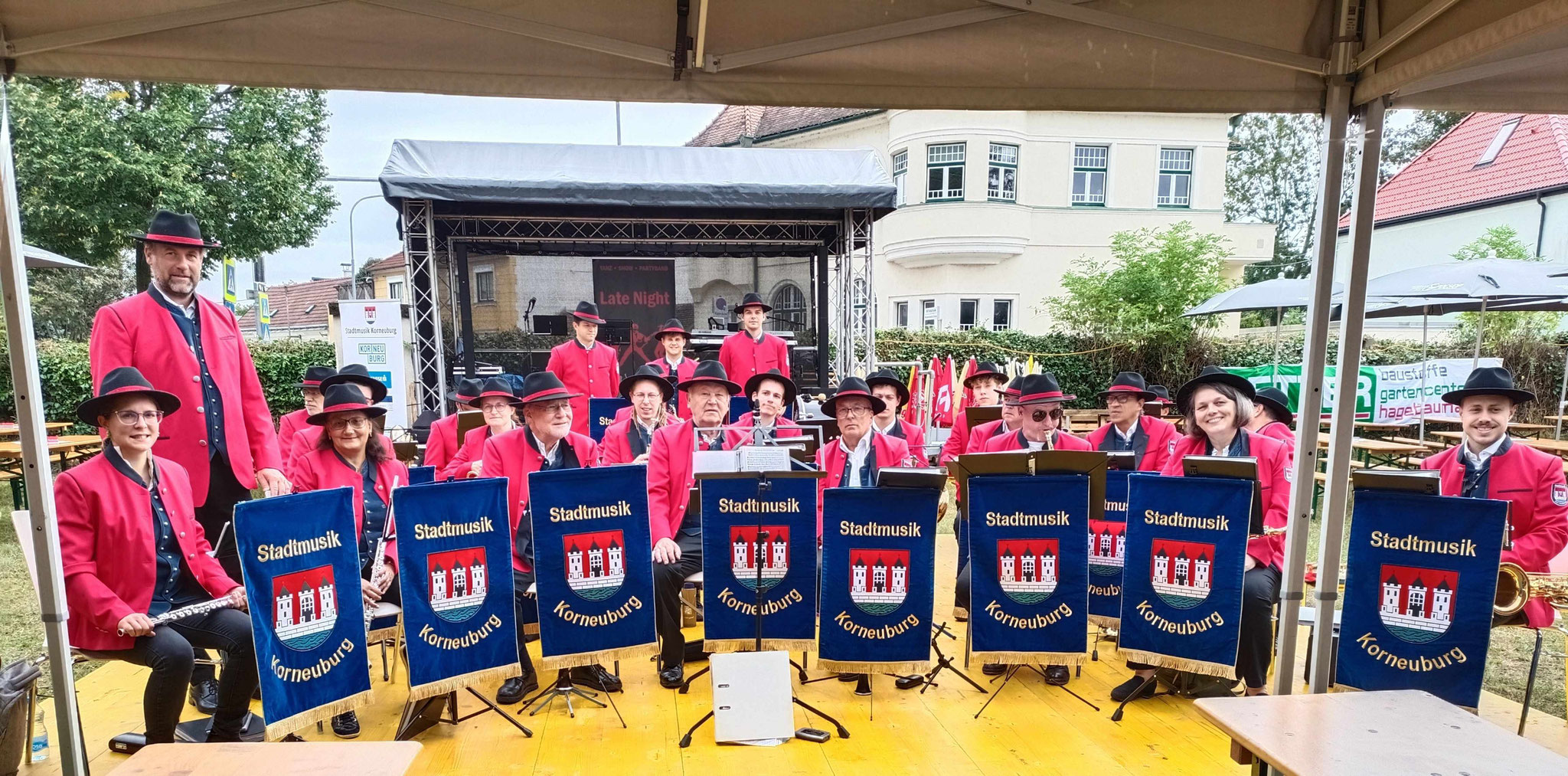 Publikum. So zogen auch die Korneuburger unter der Stabführung von Peter Vasicek ins Festzelt ein und überzeugten die Besucher und Besucherinnen mit beschwingten Melodien. Als besondere