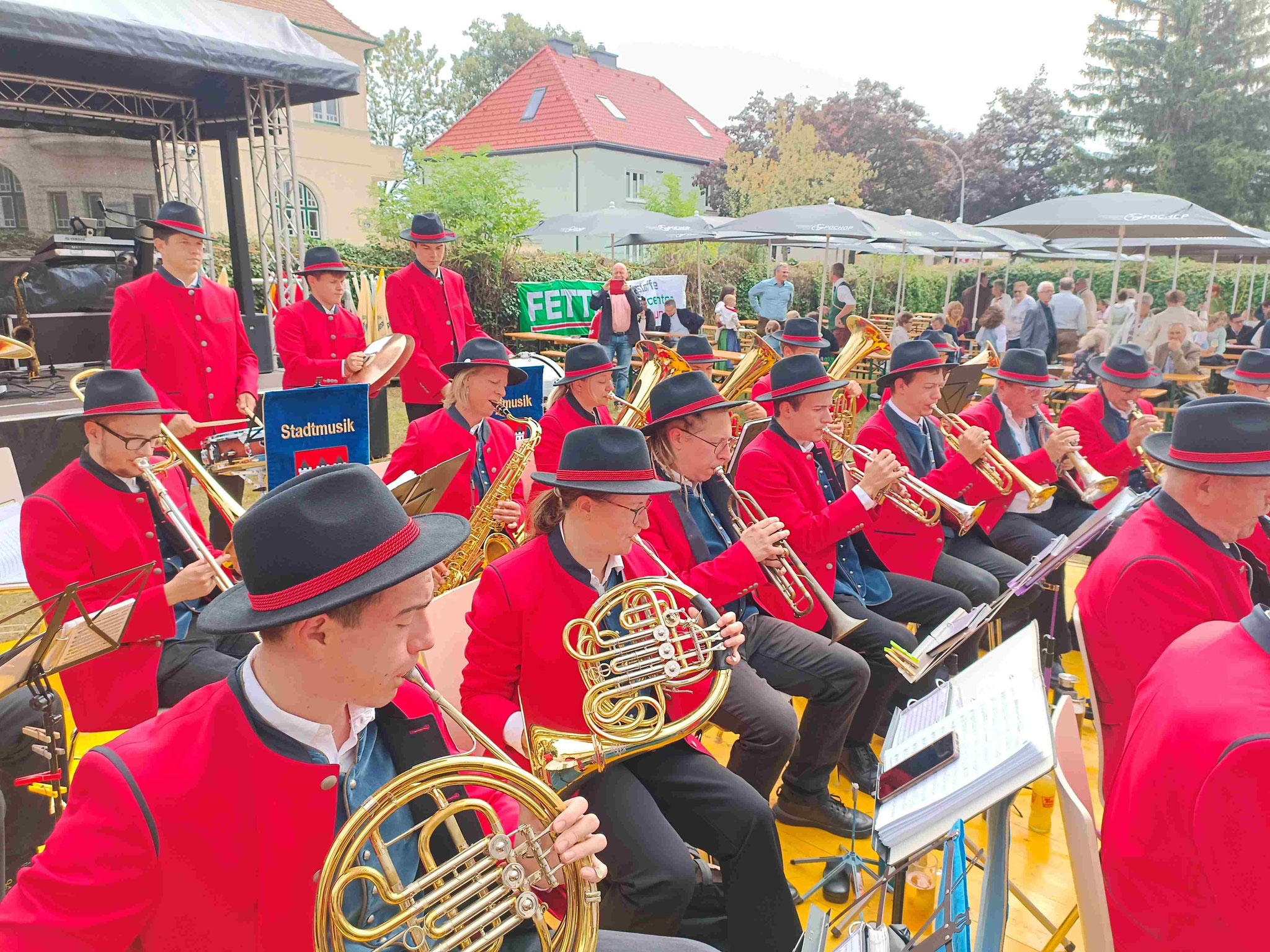 Das Wetter hielt durch, das Essen war gut und die schwungvollen Blasmusik-Melodien sorgten für beste Stimmung, sodass die Besucher unter tosendem Applaus nach der ein oder anderen Zugabe